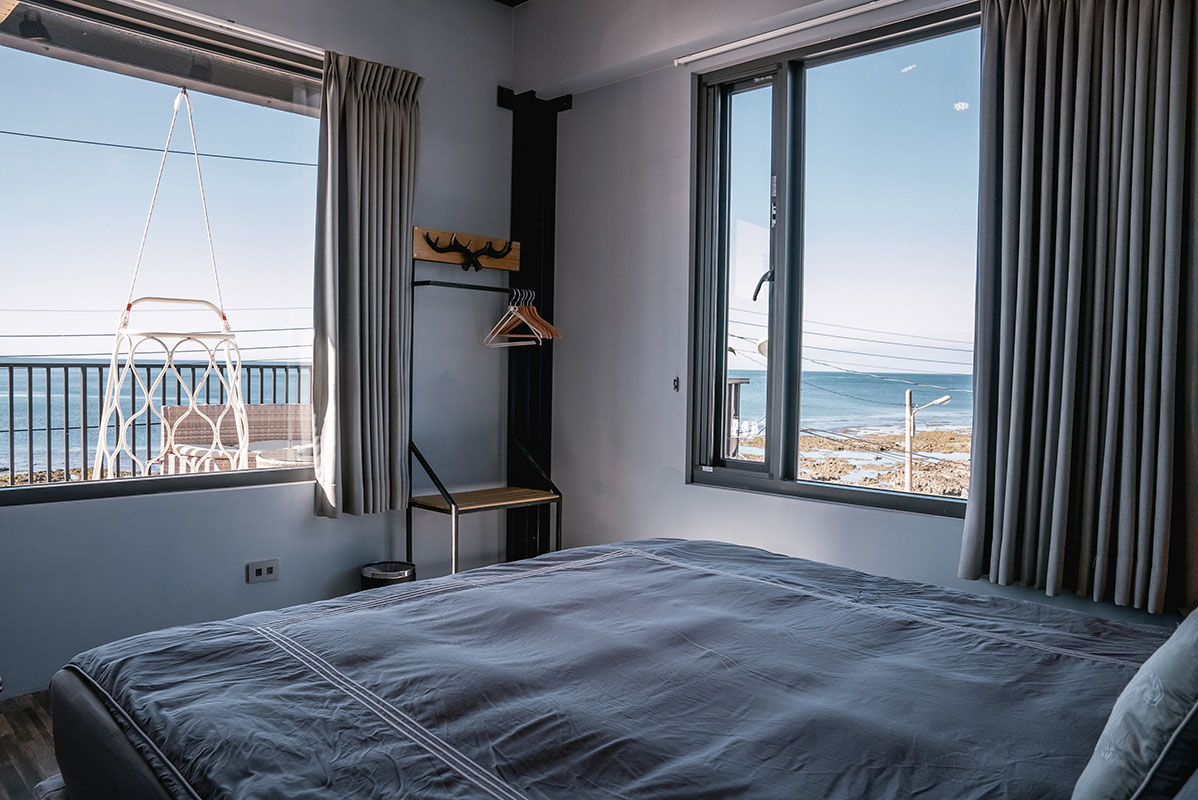 沐浴著夕陽和海風,在岸邊踏著沁涼的浪花,而眼前美景如夢,走進民宿從窗戶望出海岸線風光明媚,也許海面平靜無波澜,也許大雨落在海面的滴滴點點讓你凝望著什麼,帶著開心、沈澱或與夥伴們在這裡上演你們的故事。